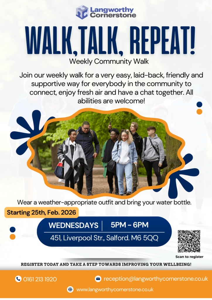 - After the walk, we’ll return to Langworthy Cornerstone to socialise, chat and unwind