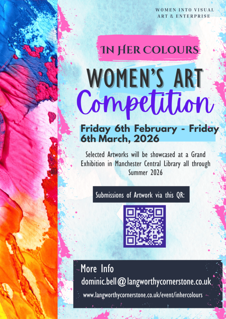 This opportunity is open to local female aspiring artists and students from East Salford. Successful artists will have their work professionally showcased and given the opportunity to sell their artwork.