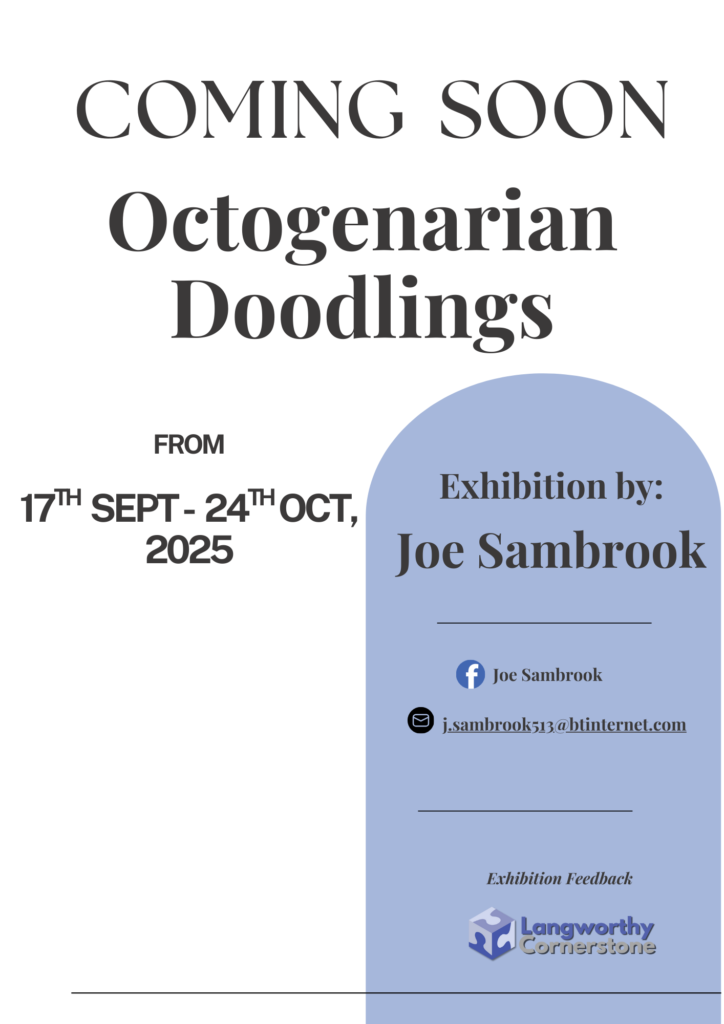 The Exhibition Open Event/ meet the Artist will be held at Langworthy Cornerstone centre on 24th sept, 2025 at 6pm